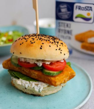 - Rozrežte hrčky, potrite tatárskou omáčkou, vložte zeleninu a ešte teplé rybie steaky.
